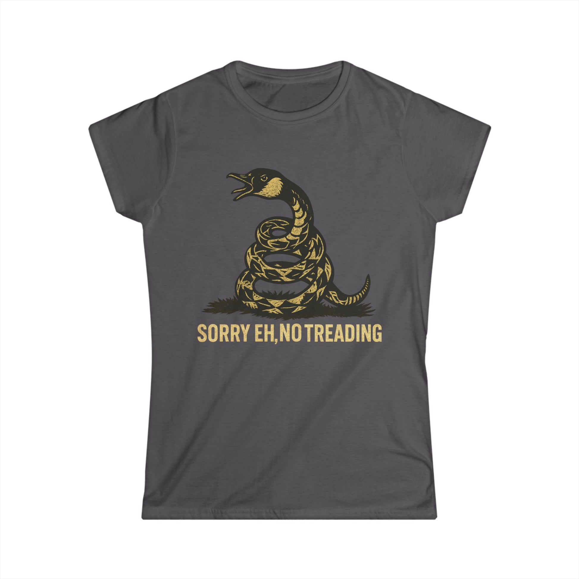 Scarier than that little old rattle snake, but polite enough for a Canadian, our Sorry Eh, No Treading is made from soft, breathable fabric. It will keep you comfortable whether you’re out and about or lounging at home. Its semi-fitted design ensures a flattering silhouette, making it great for any body type. Ideal for everyday wear, it also makes a thoughtful gift for birthdays, holidays like Thanksgiving, or celebrations like International Women's Day. You can pair this tee with your favourite jeans, leggings, or shorts for a chic yet relaxed look.